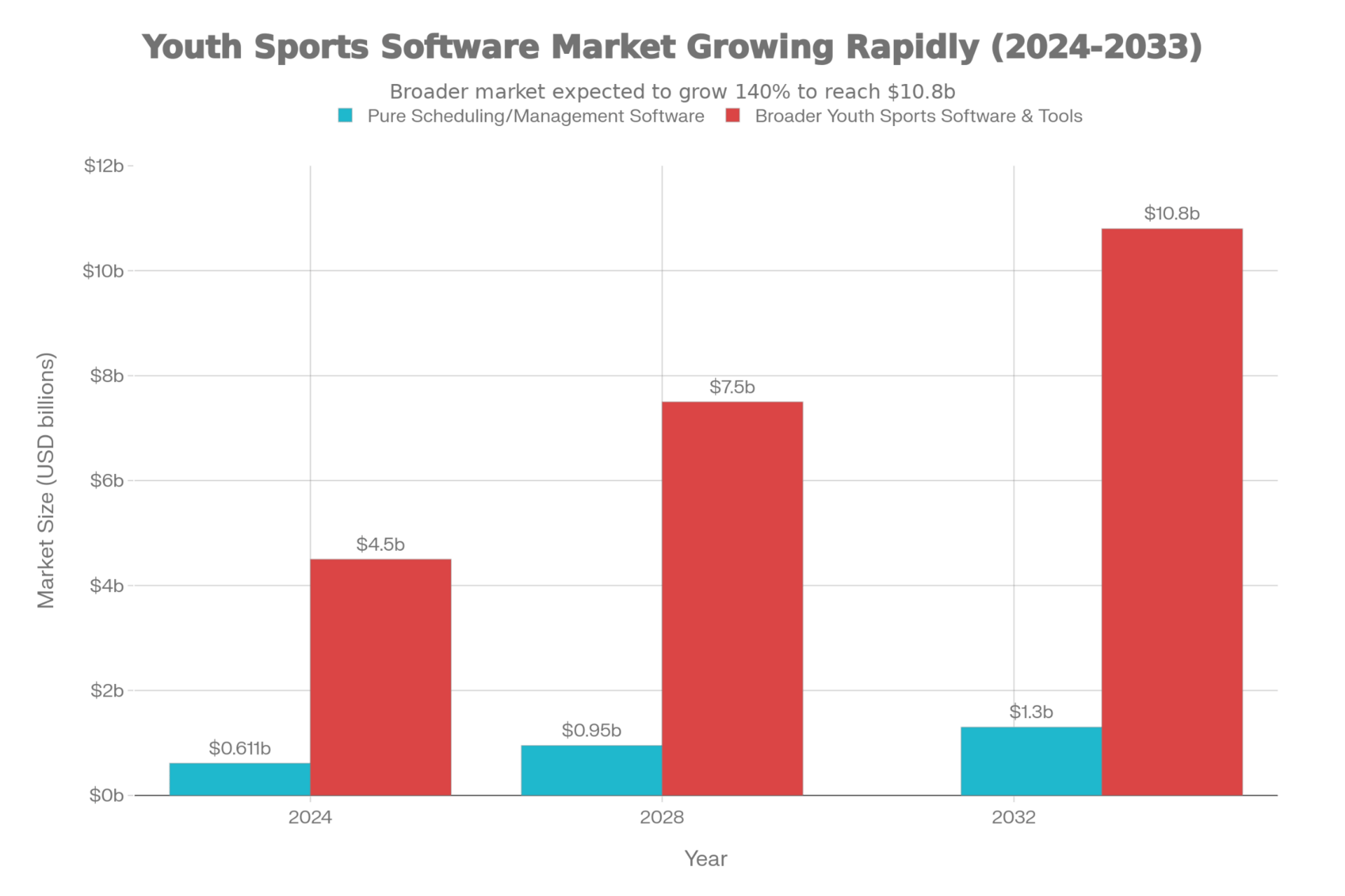 Ever-growing TAM (Sports operations software x Professional Sports x Youth Sports). Youth levels especially lack operational infrastructure