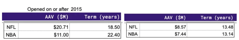 Another incentive for team owners to invest in a new stadium and adjacent complex is naming rights. Recent deals for stadium naming rights command a significant premium to older venues, whose naming rights have been locked up for years.